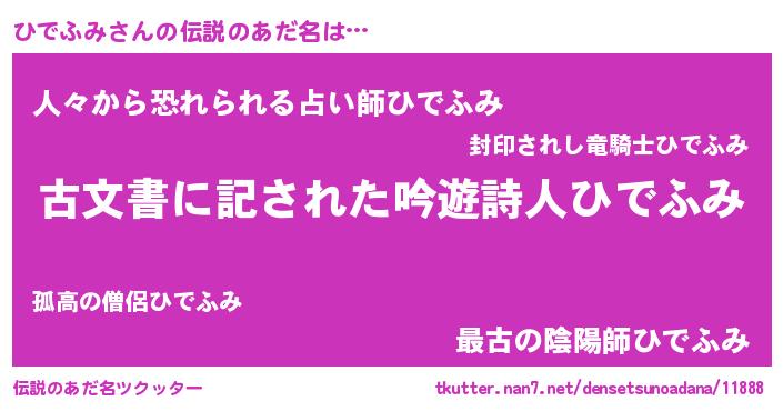 | 男性向けラノベタイトル風あだ名 | 『この素晴らしい世界にひでふみを!』 |