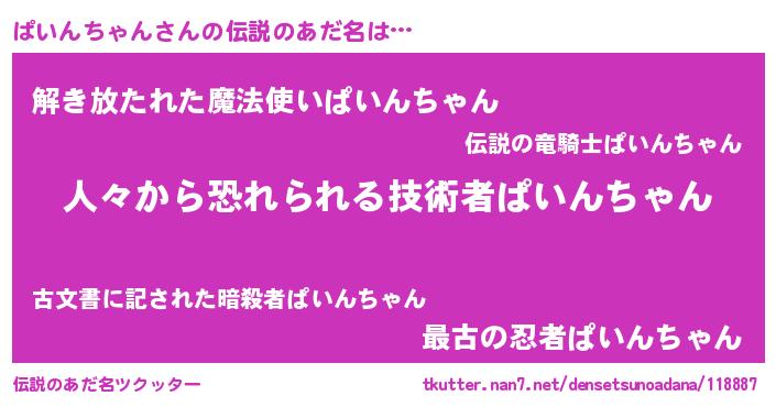 | ヒーロー風カッコイイあだ名 | 『正義の使者ぱいんちゃん』 |