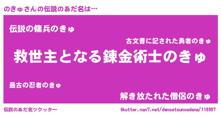 | 女子向けラノベタイトル風あだ名 | 『のきゅの玉の輿計画!』『のきゅ恋絵巻』 |