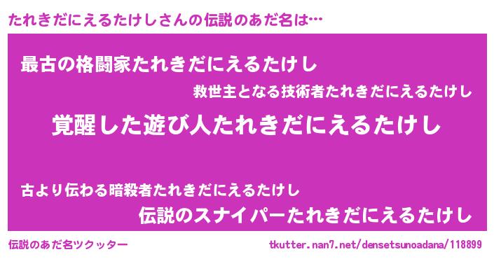 | 意味不明あだ名 | 『自称たれきだにえるたけし』 |