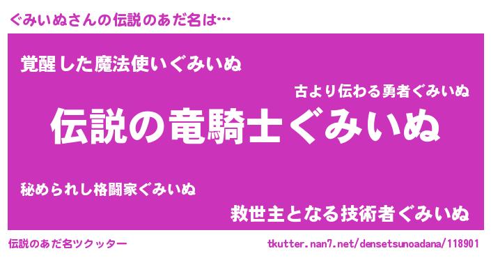 | ヒーロー風カッコイイあだ名 | 『スーパーグミイヌ』『幻影騎士グミ』 |