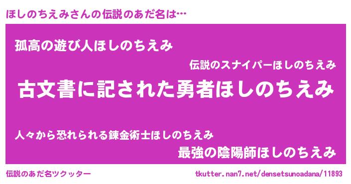 | ヒーロー風カッコイイあだ名 | 『ネオホシノチエミ』『黄金騎士ホシ』 |
