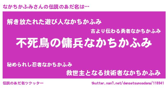 | ヒーロー風カッコイイあだ名 | 『仮面ナカダー』『スーパーナカチカフミ』 |