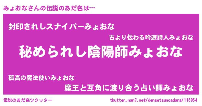 | ヒーロー風カッコイイあだ名 | 『ウルトラみょおなマン』『仮面ミョダー』 |