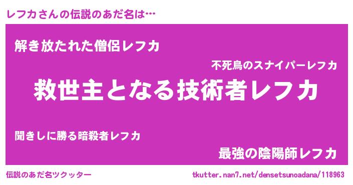 | 意味不明あだ名 | 『住所不定無職レフカ(8歳)』 |