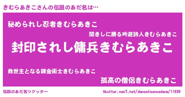 | 男性向けラノベタイトル風あだ名 | 『キムラアキコアートオンライン』 |