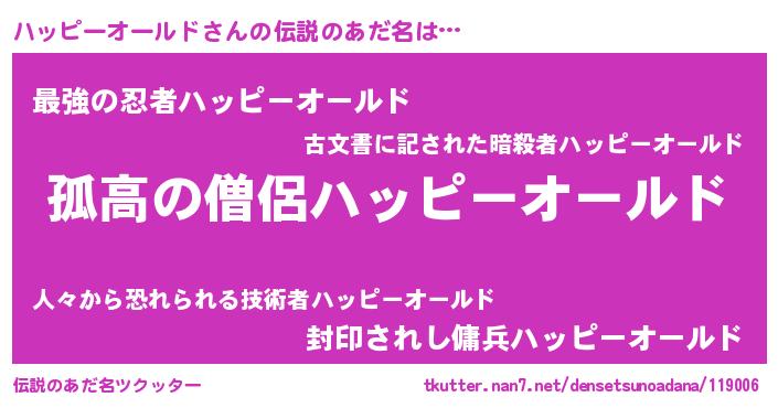 | 胡散臭い通販商品みたいなあだ名 | 『信頼と実績のネックレス…その名も「ハッピーオールド」』 |