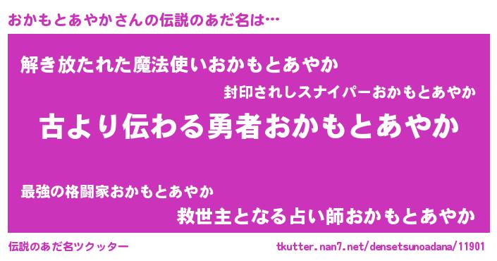 | 意味不明あだ名 | 『住所不定無職おかもとあやか(98歳)』 |