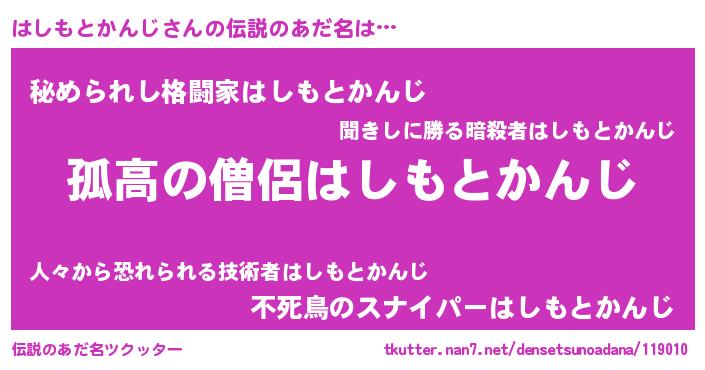 | 意味不明あだ名 | 『とにかく怪しいはしもとかんじ』 |