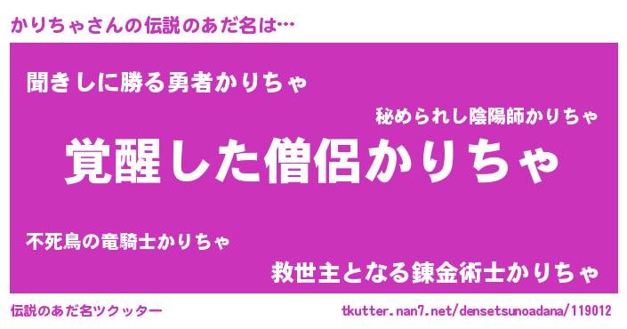 | ヒーロー風カッコイイあだ名 | 『天弓騎士カリ』『ネオカリチャ』 |
