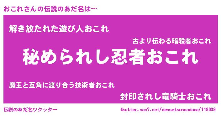 | 意味不明あだ名 | 『おこれフォーエバー』『自称おこれ』 |