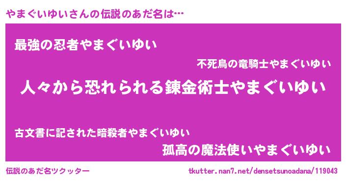 | ヒーロー風カッコイイあだ名 | 『正義の使者やまぐいゆい』 |