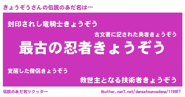 | 男性向けラノベタイトル風あだ名 | 『きょうぞうに滅ぼされるだけの簡単なお仕事です』 |
