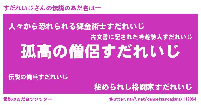 | ヒーロー風カッコイイあだ名 | 『黄金騎士スダ』『愛の使者すだれいじ』 |