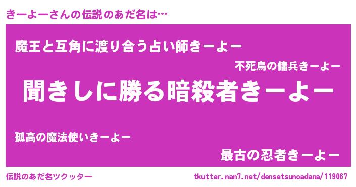 | ヒーロー風カッコイイあだ名 | 『ネオキーヨー』『慈愛の使者きーよー』 |
