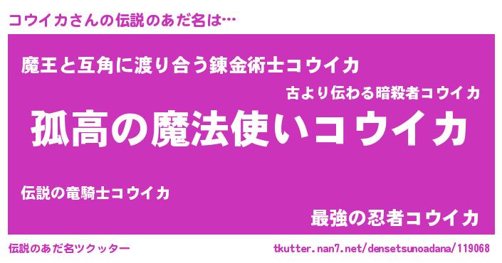 | 意味不明あだ名 | 『住所不定無職コウイカ(4歳)』 |