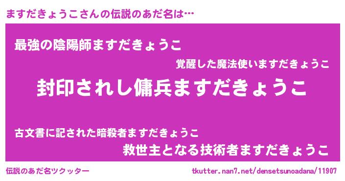 | 女子向けラノベタイトル風あだ名 | 『悪役ますだきょうこに転生したようですが、知った事ではありません』 |