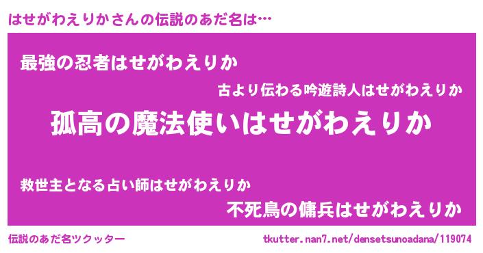 | 意味不明あだ名 | 『とにかく怪しいはせがわえりか』 |