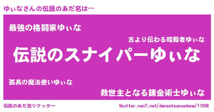 | 男性向けラノベタイトル風あだ名 | 『緋弾のユィナ』『魔弾の王とゆぃな』 |