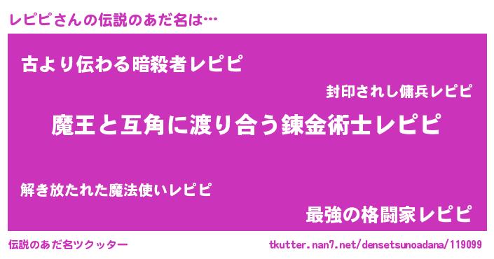 | ヒーロー風カッコイイあだ名 | 『慈愛の使者レピピ』『ネオレピピ』 |