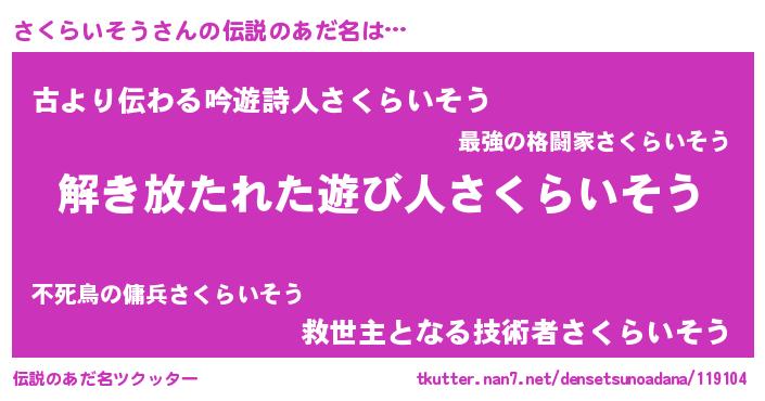 | ヘコむあだ名 | 『さくぷりん』『さくらいそう(小並感)』 |