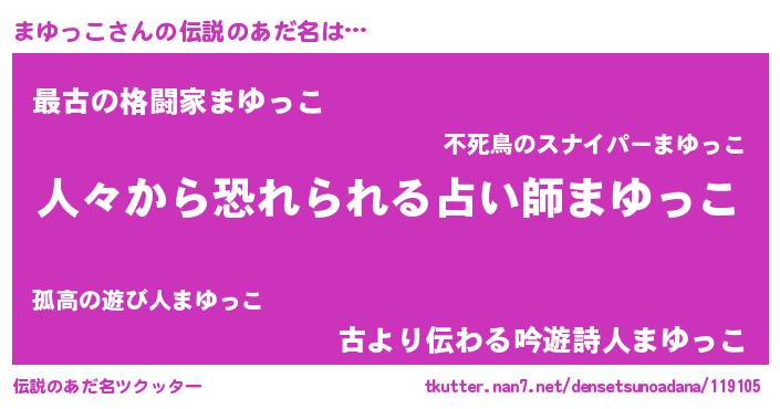 | 女子向けラノベタイトル風あだ名 | 『まゆっこアンティーク』 |