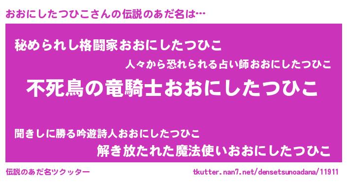 | 男性向けラノベタイトル風あだ名 | 『オオニシタツヒコアートオンライン』 |