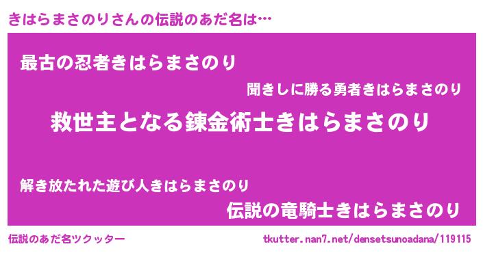 | ヒーロー風カッコイイあだ名 | 『天空の使者きはらまさのり』 |