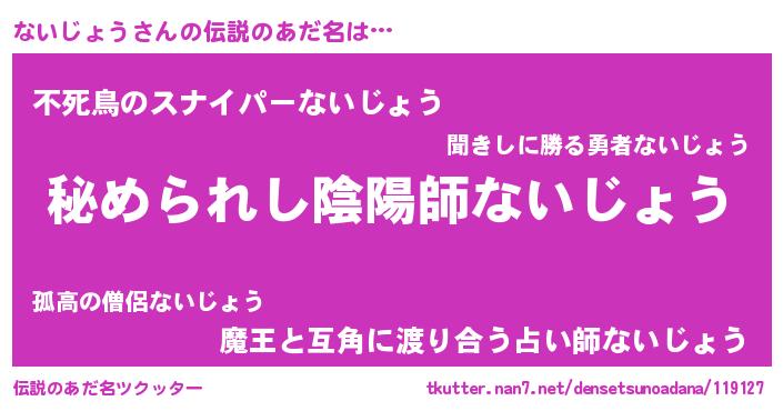 | 女子向けラノベタイトル風あだ名 | 『ないじょうなんてお断りですっ。』 |