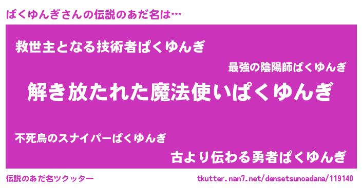 | 意味不明あだ名 | 『とにかく怪しいぱくゆんぎ』 |