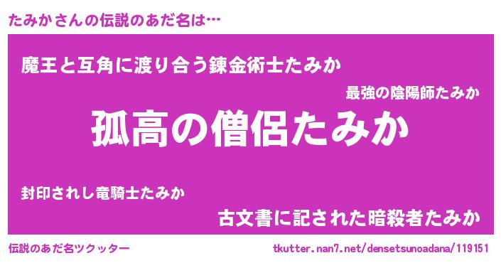 | 意味不明あだ名 | 『とにかく怪しいたみか』『自称たみか』 |