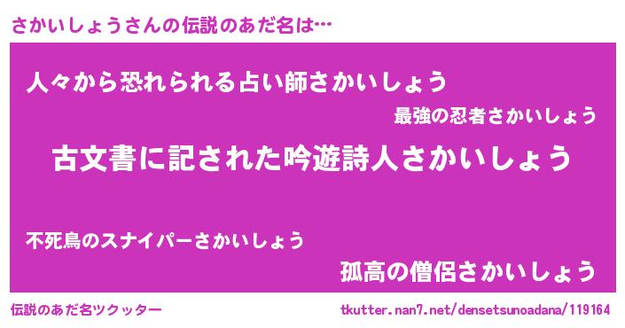 | ヒーロー風カッコイイあだ名 | 『ネオサカイショウ』『仮面サカダー』 |