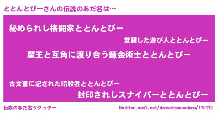 | ヒーロー風カッコイイあだ名 | 『愛の使者ととんとぴー』『仮面トトダー』 |