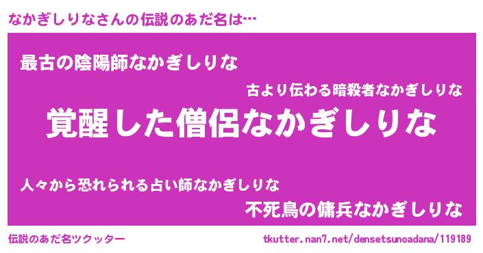 | ポケモン風あだ名 | 『ナーカイ』『ヒナカギシリナ』 |