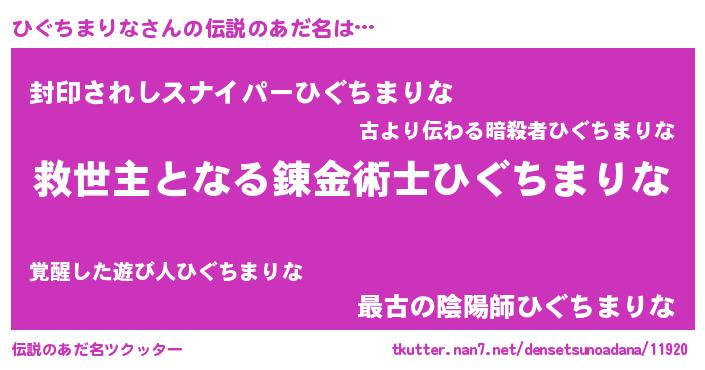 | ヒーロー風カッコイイあだ名 | 『天空の使者ひぐちまりな』 |