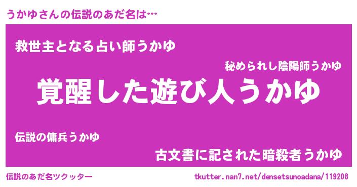 | ヒーロー風カッコイイあだ名 | 『仮面ウカダー』『最強戦士ウカユ』 |