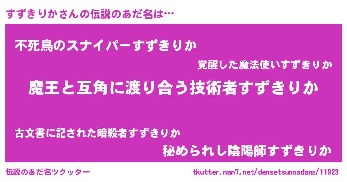 | 女子向けラノベタイトル風あだ名 | 『すずきりか恋絵巻』 |