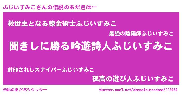 | ヒーロー風カッコイイあだ名 | 『ネオフジイスミコ』『仮面フジダー』 |