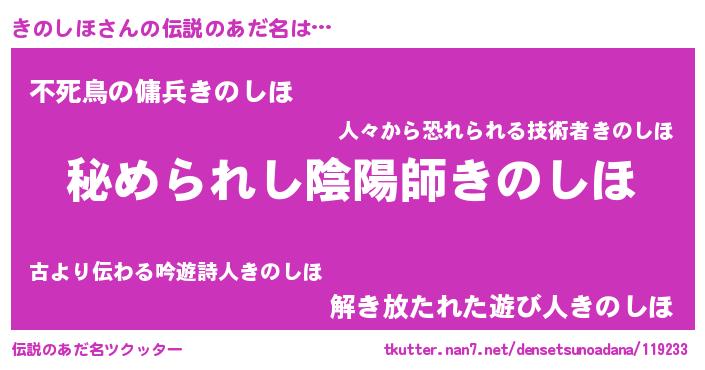 | 意味不明あだ名 | 『きのしほフォーエバー』『自称きのしほ』 |