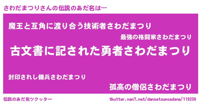 | 男性向けラノベタイトル風あだ名 | 『さわだまつりに滅ぼされるだけの簡単なお仕事です』 |