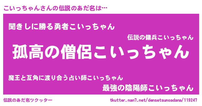 | 意味不明あだ名 | 『自称こいっちゃん』 |