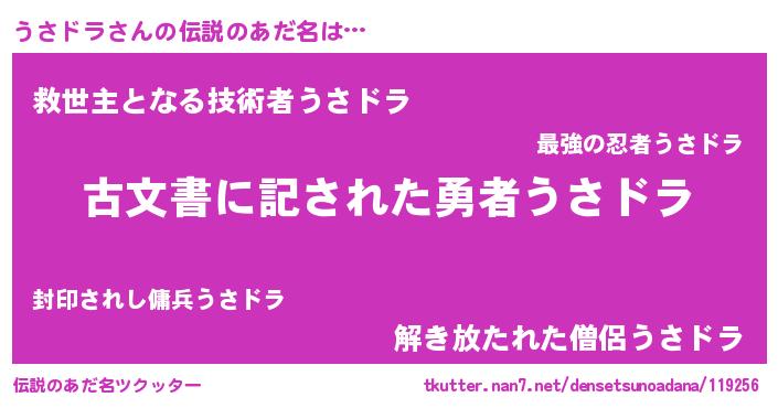 | ヒーロー風カッコイイあだ名 | 『仮面ウサダー』『ウルトラ戦士ウサドラ』 |