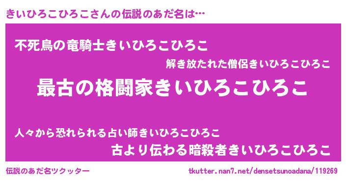 | 意味不明あだ名 | 『きいひろこひろこフォーエバー』 |