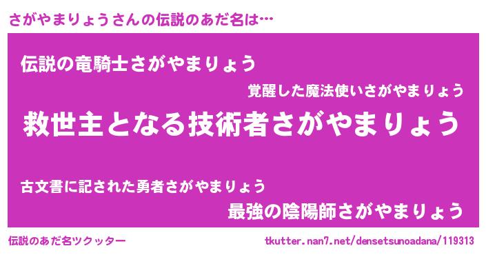 | 男性向けラノベタイトル風あだ名 | 『ノーゲーム・ノーサガヤマリョウ』 |