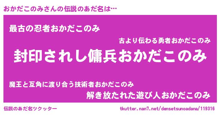 | 胡散臭い通販商品みたいなあだ名 | 『億万長者になれる水晶球…その名も「おかだこのみ」』 |