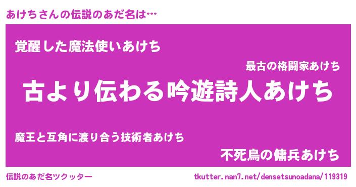 | ヘコむあだ名 | 『あけち(笑)』『あけっちょ』 |