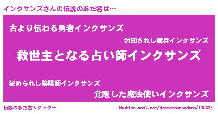 | ヒーロー風カッコイイあだ名 | 『天空の使者インクサンズ』 |