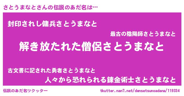 | ヒーロー風カッコイイあだ名 | 『魔戒騎士サト』『スーパーサトウマナト』 |