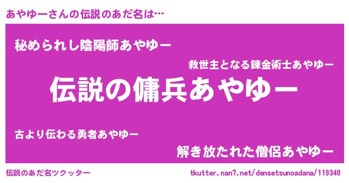 | ヒーロー風カッコイイあだ名 | 『スーパーアヤユー』『銀牙騎士アヤ』 |