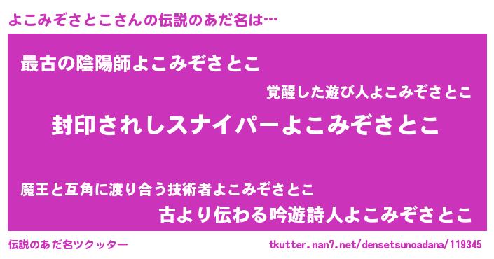 | 男性向けラノベタイトル風あだ名 | 『よこみぞさとこに滅ぼされるだけの簡単なお仕事です』 |
